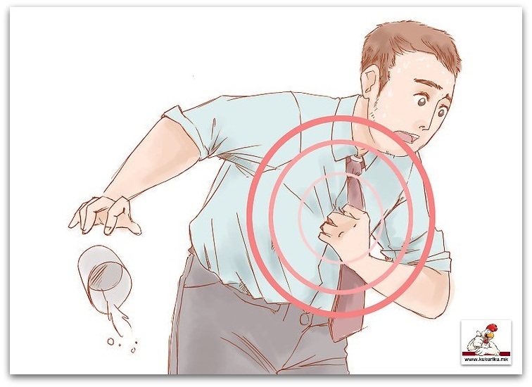 Исто така познат како миокарден инфаркт, се јавува кога протокот на крвта запира до срцето и предизвикува оштетување на срцевиот мускул. Симптоми: болка во градите или непријатност која се протега до рамо, раката, грбот, вратот или подлактицата. Често се наоѓа во центарот на левата страна на градниот кош и трае подолго од неколку минути. Нелагодноста предизвикува чувство на запалено срце. Во други симптоми спаѓаат уште и недостаток на здив, гадење, вртоглавица, ладна пот и замор.
