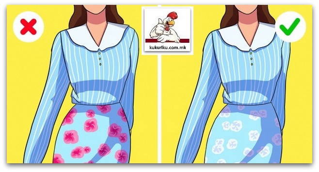 Не носете премногу шарени принтови. Можете да комбинирате два различни принта, но во една иста боја, или две исти шари со различна големина.