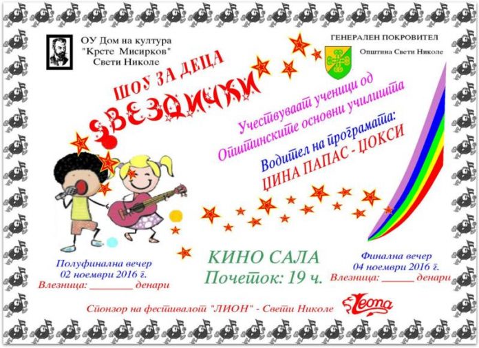 SHOWBIZ Шоу за деца Ѕвездички November 1, 2016 2960 Share Facebook Twitter Google+ Pinterest WhatsApp