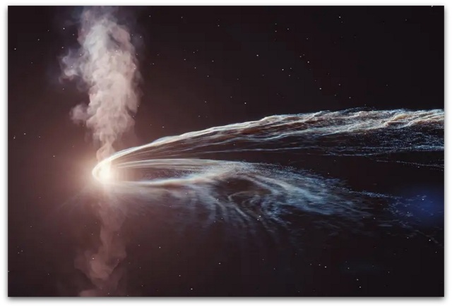 Дека црните дупки сè уште се вселенски објекти за кои знаеме многу малку, потврдува и најновото истражување во кое е откриено дека една црна дупка, оддалечена 650 милиони години од нас, две години откако проголтала ѕвезда, всушност „подригнала“ во титански размери.