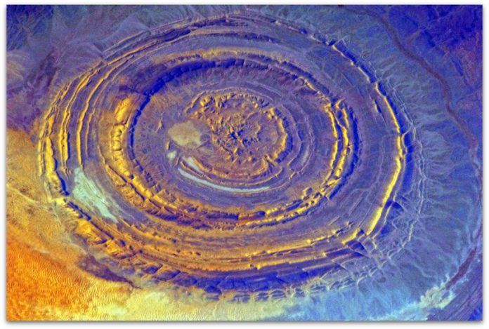 Тоа е структурата Richat, исто така позната и како Guelb er Richat или Окото на Сахара, што убаво се гледа на насловната фотографија на статијата, а мал проблем за скептиците е фактот дека тоа не е фотошоп туку сателитска снимка.