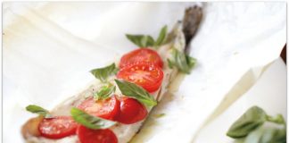 Филе од пастрмка со домати и босилек