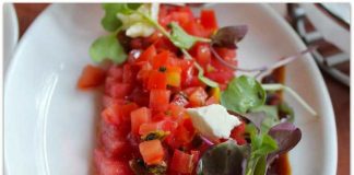Летна салата со лубеница, домати и рукола