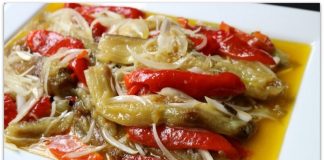 Салата со модар патлиџан и пиперки