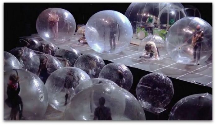 Водачот на оваа група, Вејн Којн, се обиде да ја истурка својата идеја за настап во меурчиња уште од самиот почеток на пандемијата, бидејќи се чинеше забавно на многу нивоа: присатно е мултисензорно задоволство, нема недостаток на танц или интеракција, а сепак – никој не се допира. А тука е и сосема ново искуство со движење во балони.