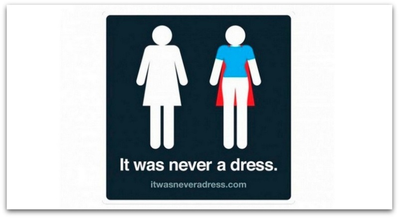 Танија Катан од „Axosoft“ тврди дека триаголникот што го претставуваl фустанот на женскиот тоалетен знак никогаш не претставуваl фустан. На новиот знак, тие го претвориле фустанот во наметка, па велат дека жените можат да бидат суперхерои.