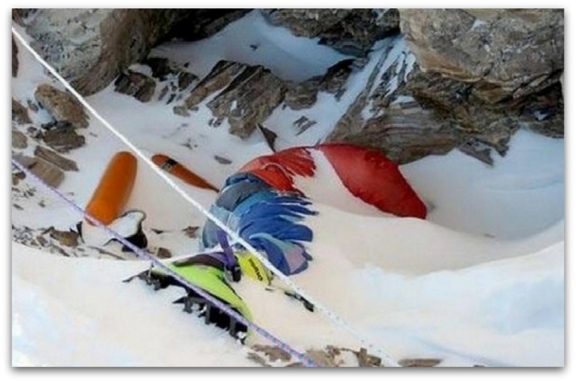 Сите освојувачи на врвот во модерното време се сеќаваат на телата на мртвите кои не само што не се отстрануваат туку служат како маркери за траги и засолништа.