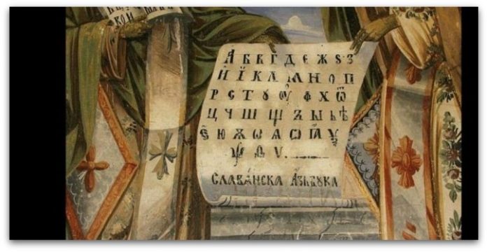 – Уште во деветтиот век браќата Кирил и Методиј, со помош на глаголицата, како оригинално писмо, ги превеле црковните книги на јазикот на македонските Словени од околината на градот Солун (во науката познат како старословенски и старомакедонски). Со благослов на папата, овој јазик станува четвртиот признат јазик во светот што е достоен за Библијата и за Бога. Подоцна, постапно, кирилицата го зазема своето место во писмената традиција.