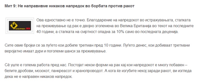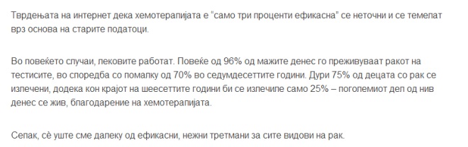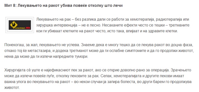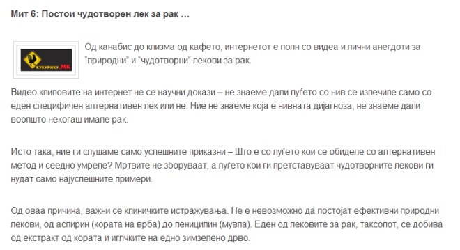 МЕДИЦИНА Десет најголеми митови за ракот | Кој ви продава лажни лекови, кој ја зборува вистината и што навистина делува December 9, 2018 2087 Share Facebook Twitter Google+ Pinterest WhatsApp
