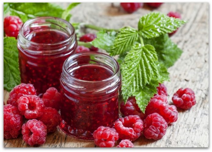 Џем од убави малини со додаток на ванила и свежи листови нане …