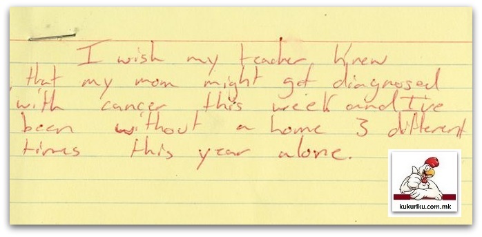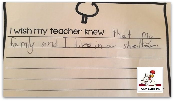 Би сакал/а мојата учителка да знае дека на мајка ми можеби ќе и биде дијагностициран рак оваа недела и дека три пати оваа година немавме дом.