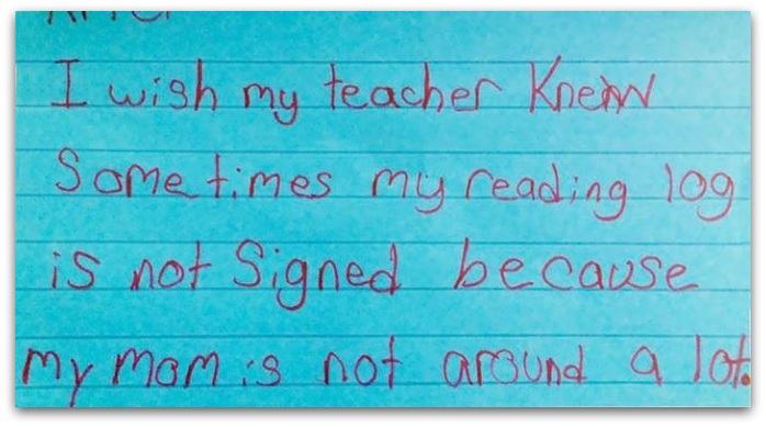 Би сакал/а мојата учителка да знае дека понекогаш листата за читање не ми е потпишана оти мајка ми е често отсутна.