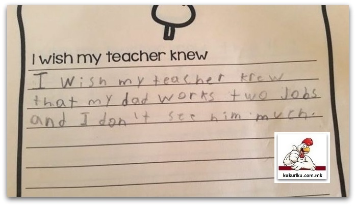 Кајли Шварц, учителка во трето одделение во училиште во Денвер, Колорадо им дала на нејзините ученици многу едноставна задача. Ги замолила да ја довршат реченицата “Би сакал/а мојата учителка да знае дека…”