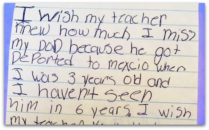 Би сакал/а мојата учителка да знае колку многу ми неостасува татко ми бидејќи го депортираа во Мексико кога имав три години. не сум го видел/а 6 години.