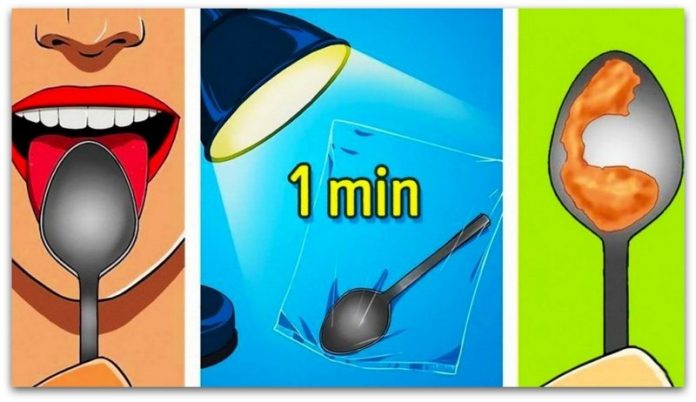 Прво – земете на обична лажица и добро навлажнете ја површината со јазикот, натопете ја добро со плунка.