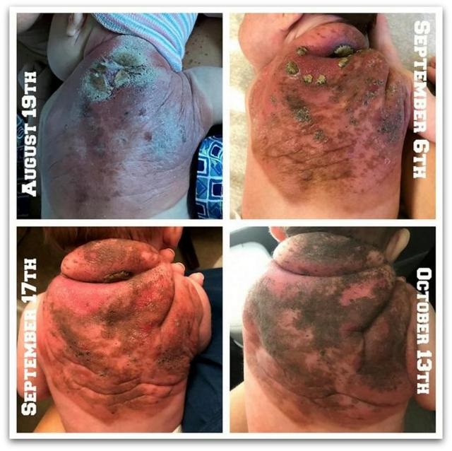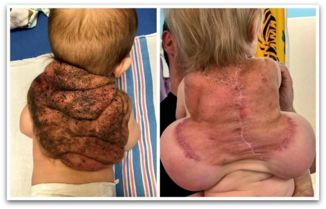 Бидејќи оваа состојба обично се појавува на лицето, родителите се среќни што се појавила на грбот на нивното момче.