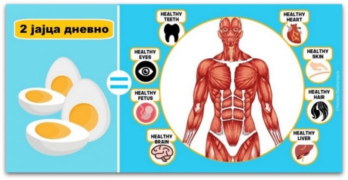 Всушност, тие се лесен, разновиден и евтин извор на протеини. Исто така, тие се богати со амино киселини, антиоксиданти, и железо. Тие се многу корисна храна за целокупното здравје на човекот, што значи, 85 калории јајце содржи 7 грама мускулна маса која сакате да ја добиете.