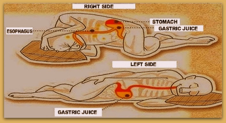 Спиењето на левата страна овозможува подобрена работа на слезината, односно лимфната дренажа на целото тело.