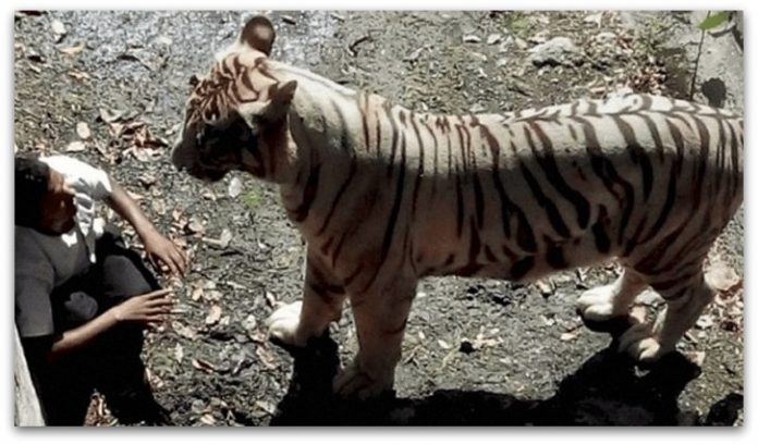 Во Индија, човек сакал подобро да го види белиот тигар и се качил на дрво. За несреќа, паднал од дрвото право во кафезот. Тигарот му се приближил и скоро 15 минути го држел приклештен во аголот додека другите посетители и чуварите се обидувале да му го одвлечат вниманието. За жал, нивните напори биле залудни бидејќи тигарот го растргнал човекот.