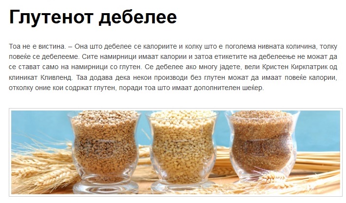 Глутенот всушност се протеини кои се наоѓаат во пченицата, ‘ржта и јачменот. Постојат повеќе сознанија во врска со штетноста на глутенот.