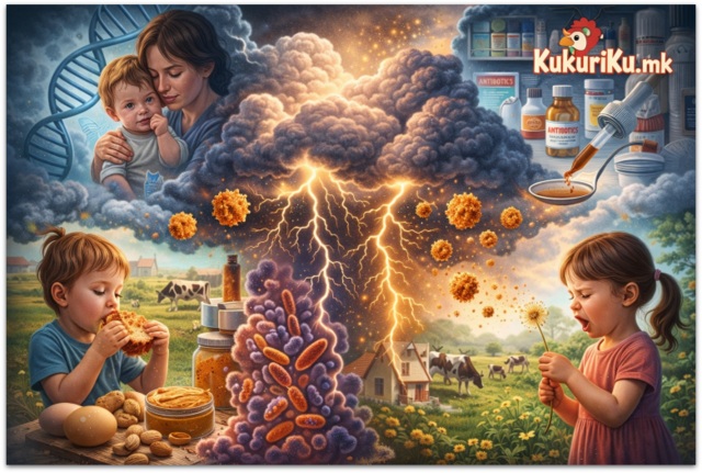 Голема меѓународна студија која опфатила околу 2,8 милиони деца укажува дека алергиите се резултат на сложена комбинација од повеќе фактори – генетика, изложеност на микроби, исхрана и употреба на антибиотици во раниот живот.