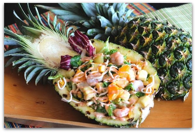 Во голем сад измешајте го пилешкото, краставица, портокали, ананас и оревите. Во друга чинија направете дресинг од мајонезот, копар и шеќер. Измешајте ги добро и додадете ги во смесата со пилешкото.