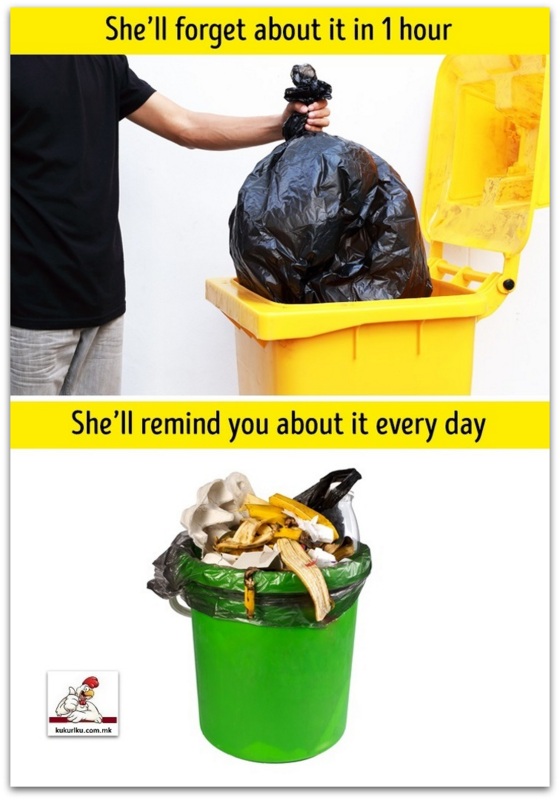 Секоја жена е запознаена со ситуацијата кога партнерот заборава да купи одредена храна или да го фрли ѓубрето. За овој факт има научно објаснување. Во 2015-та година, Лијана Плермо им понудила на 100 мажи и жени разни задачи со цел да ја тестира нивната меморија во интервал од 2 минути до 1 ден. Излегло дека жените подобро ги помнат задачите за во иднина, додека ги заборавале завршените.