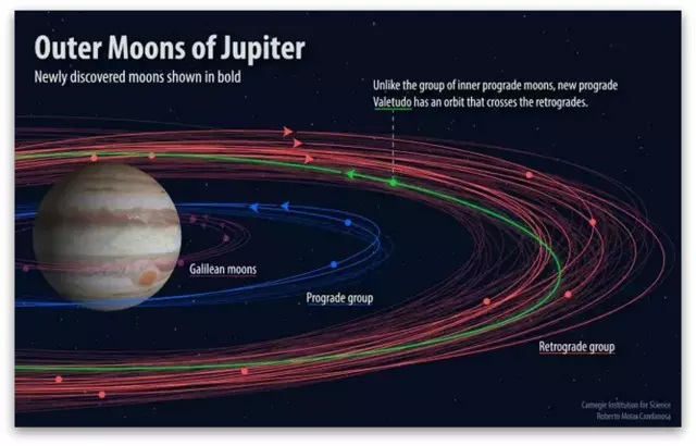 Сите новооткриени месечини на Јупитер се веројатно премногу мали за да бидат именувани и потребни се повеќе од 340 дена за да орбитираат околу гасниот џин.