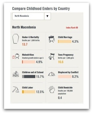 Оваа организација изготви извештај за условите во кои растат децата во 172 држави во целиот свет. Во однос на тоа каков е квалитетот на живеењето на децата, колкава е стапката на морталитет, ухранетоста и слично составена е листа на држави во кои е најдобро или налошо да се биде дете.