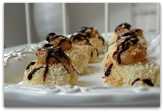 Тестото извадете го од фрижидер и со раце откинувате од него парчиња и формирајте ги како топчиња. Топчињата потопете ги во благо изматена белка од јајце и потоа увалкајте ги во кокос.