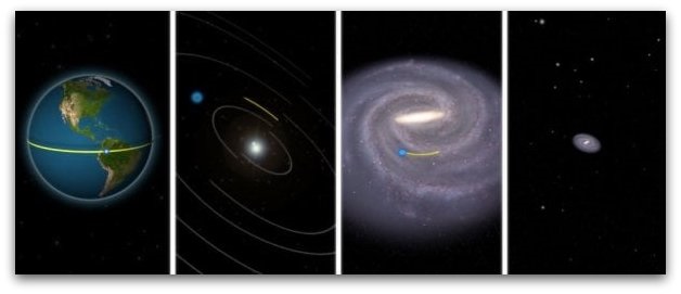Но, сончевиот систем не стои во нашата галаксија, исто како што галаксијата не е неподвижна во однос на остатокот од универзумот. Значи, треба да ги додадеме и тие брзини на равенката.