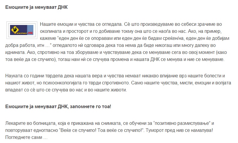 Едно од неговите најпознати тврдења е дека човечките емоции можат да влијаат на ДНК и дека колективната молитва може да излечи било која физичка болест.