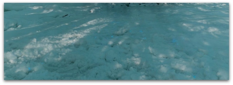 Микробиологот Вера Емелјаненко забележа слаба синкава светлина во снегот покрај брегот на Белото море. Овој ефект го предизвикуваат необични организми.
