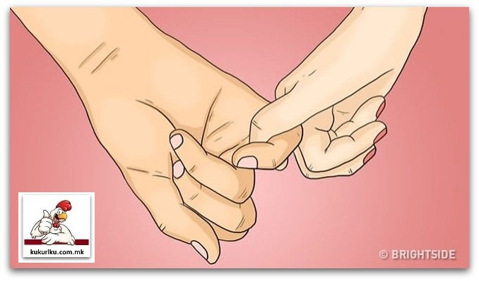 Ако ги држете раце на овој начин, тоа значи дека вашата врска се темели на љубов, но не и на страст.