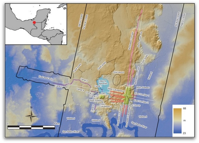 Првичните истражувања го потцениле обемот на локацијата. Детална студија со употреба на LIDAR и предводена од ТаTakeshi Inomata од американскиот Универзитет во Аризона откри дека комплексот се протега на оска од девет и 7,5 километри, формирајќи распоред во форма на крст.