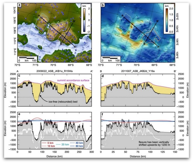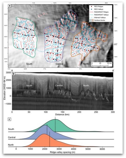Користејќи сателитски податоци и радар што пробива мраз од воздушна точка, нова студија открива пејзаж кој не бил забележан со претходните истражувања. Додека претходните истражувања укажувале на античките карактеристики под мразот, новото истражување претставува уникатно откритие. Студијата е објавена во списанието Nature Communications.