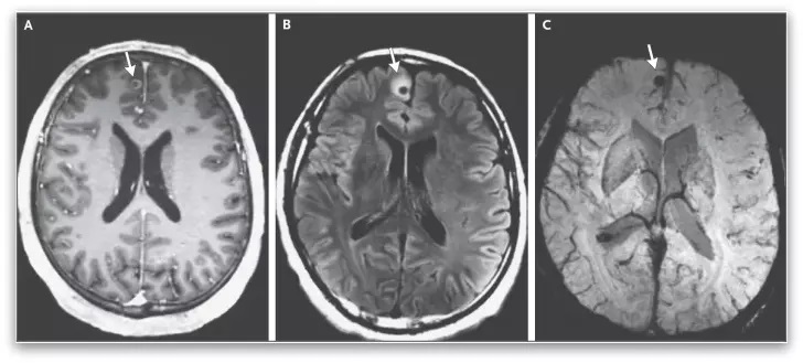 Скенирањето на мозокот откри три калцифицирани лезии. Со оглед на нивната презентација и медицинската историја на пациентот, лекарите заклучиле дека се работи за цисти кои припаѓаат на паразитската свинска тенија (Taenia solium). Овие црви слични на бели панделки се потпираат на човечките домаќини за да стигнат до фазата на возрасни од нивниот животен циклус, каде што се закачуваат за тенкото црево со десетици мали куки