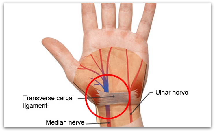Карпалниот тунел се наоѓа на предниот дел на зглобот. Сместено е помеѓу осум мали коски на зглобот, додека горната страна е затворена со попречно поставен карпален лигамент. Преку него преминува медијалниот нерв, кој е под постојан притисок кај синдромот на карпален тунел. Оваа болест порано била типична за музичари, дактилографи и возачи, а денес најчесто е поврзана со професии кои вклучуваат работа на компјутер.