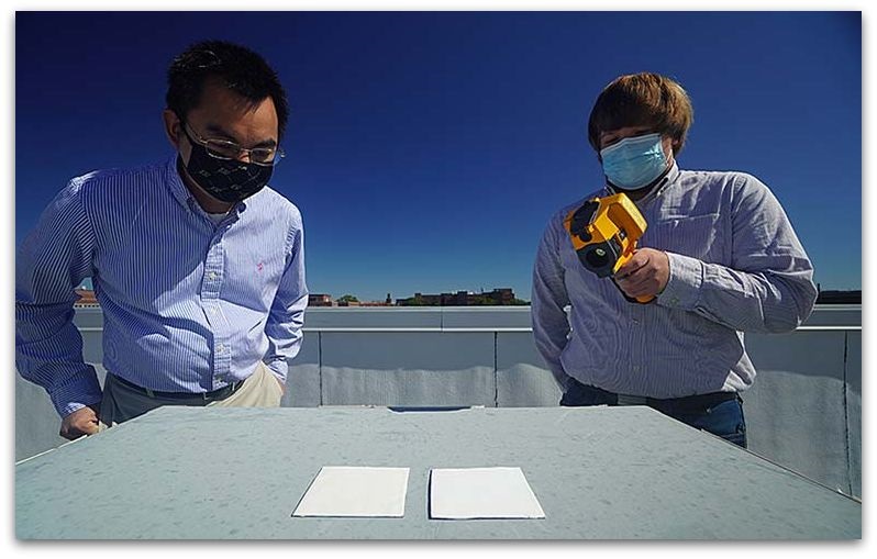 За да ја испита ефикасноста на новата боја, професорот Руан користел инфрацрвена камера. Тој ги сними обложените површини и ги спореди резултатите, што можете да ги видите на следниот клип.