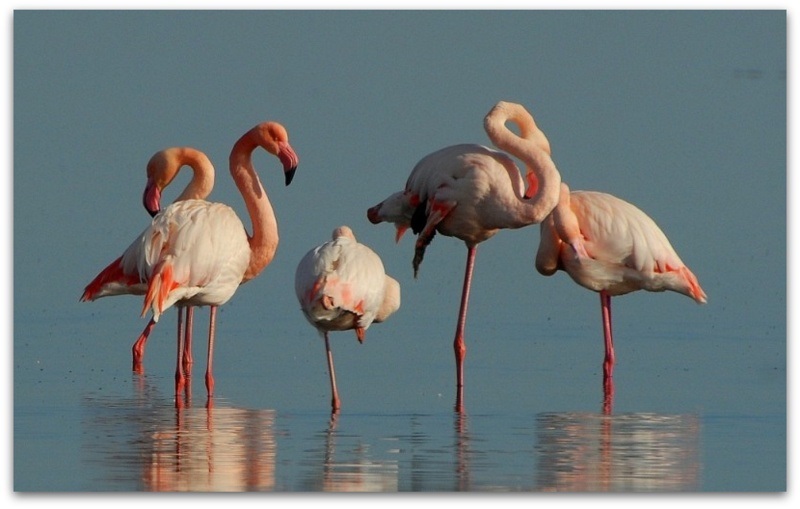 Утрово на Преспанското езеро забележани се пет розови фламинга кои најверојатно одмораат од патот за каде што тргнале, соопштија од Македонското еколошко друштво (МЕД).