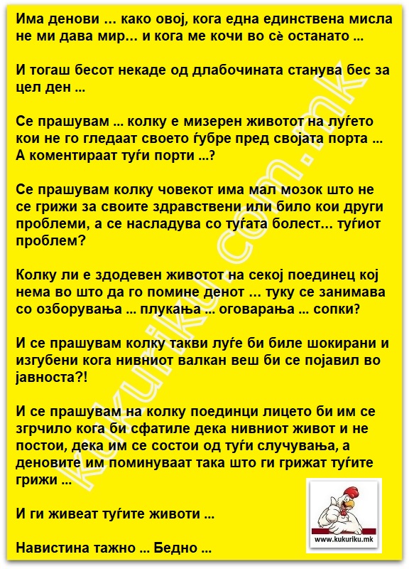 ОД СКРИЕНИОТ ТЕФТЕР После некои разговори, посакаш да си го измиеш мозокот со варикина March 22, 2019 3053 Share Facebook Twitter Google+ Pinterest WhatsApp