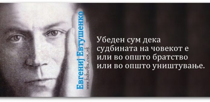 МИСЛИТЕЛИ Позитивна мисла | Евгений Евтушенко April 10, 2022 1657 Share Facebook Twitter Google+ Pinterest WhatsApp Убеден сум дека судбината на човекот е или во општо братство или во општо уништување. Евгений Евтушенко