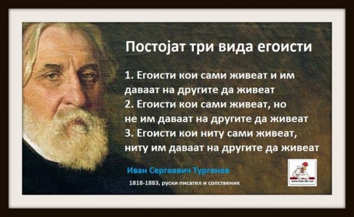 Потојат три вида егоисти: егоисти кои сами живеат и им даваат на другите да живеат; егоисти кои сами живеат, но не им даваат на другите да живеат; и на кајот на краиштата, егоисти кои ниту живеат, ниту им даваат на другите да живеат.
