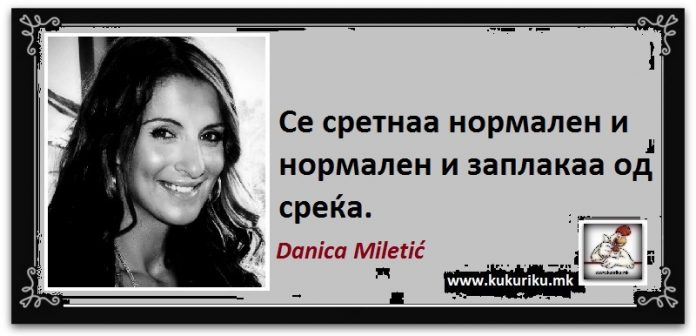 МИСЛИТЕЛИ Позитвна мисла | Даница Милетиќ January 23, 2019 1629 Share Facebook Twitter Google+ Pinterest WhatsApp Се сретнаа НОРМАЛЕН и НОРМАЛЕН, и заплакаа од среќа. Даница Милетиќ