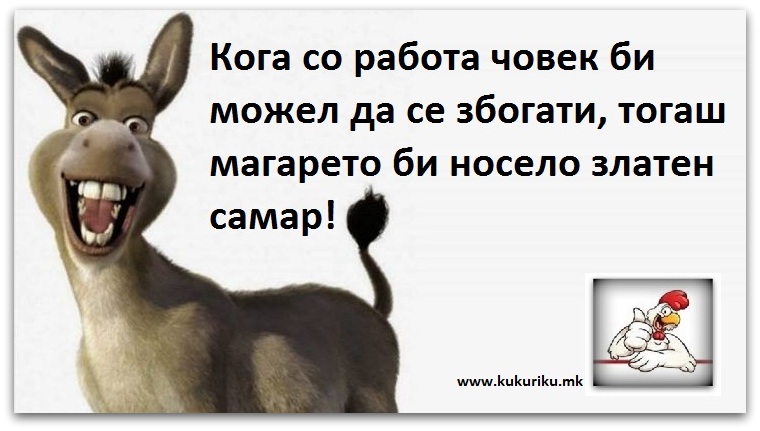 МИСЛИТЕЛИ Позитвна мисла | Магарето и самарот April 15, 2016 4905 Share Facebook Twitter Google+ Pinterest WhatsApp Кога со работа човек би можел да се збогати, тогаш магарето би носело златен самар.