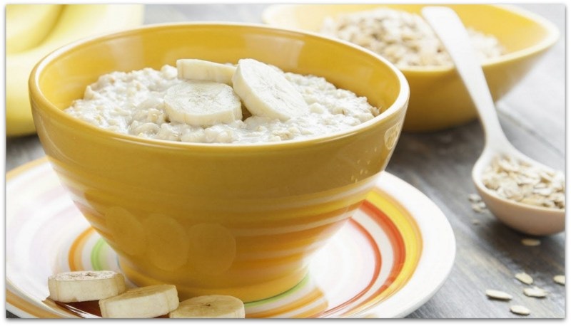 Половина шолја овесни снегулки прелијте ги со шолја вода и загрејте ги во микробранова печка 2 минути. Потоа додадете 3 лажици белка и една сецкана банана па сето тоа убаво измешјте го и вратете во микробранова на уште 2 минути.