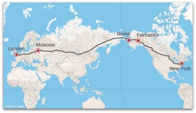 Како што можете да видите, патот ќе треба да помине преку Беринговиот теснец за да ги поврзе Русија и Алјаска, и ќе ги поврзува не само луѓето и земјите, туку и континентите.