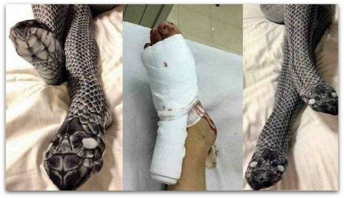 Кога сфатил дека тоа се нозете на неговата сопруга веќе било касно. И го скршил стапалото на неколку места.