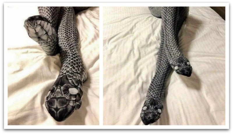 Таа купила чорапи со шара на змија, па кога сопругаот видел, помислил дека во креветот до неговата сопруга лежат две змии.