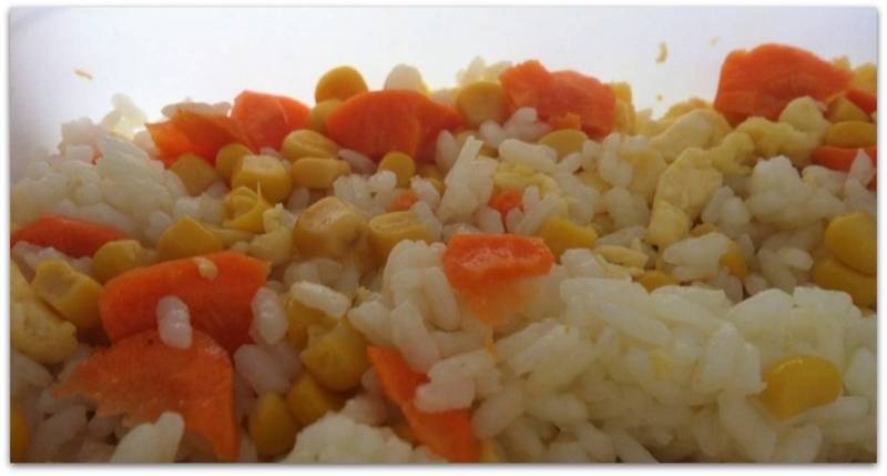 Во длабок сад се ставаат сечканите шампињони, сечканите краставички и морковите, пченката убаво исцедена од водата и сварениот и добро исцеден ориз.